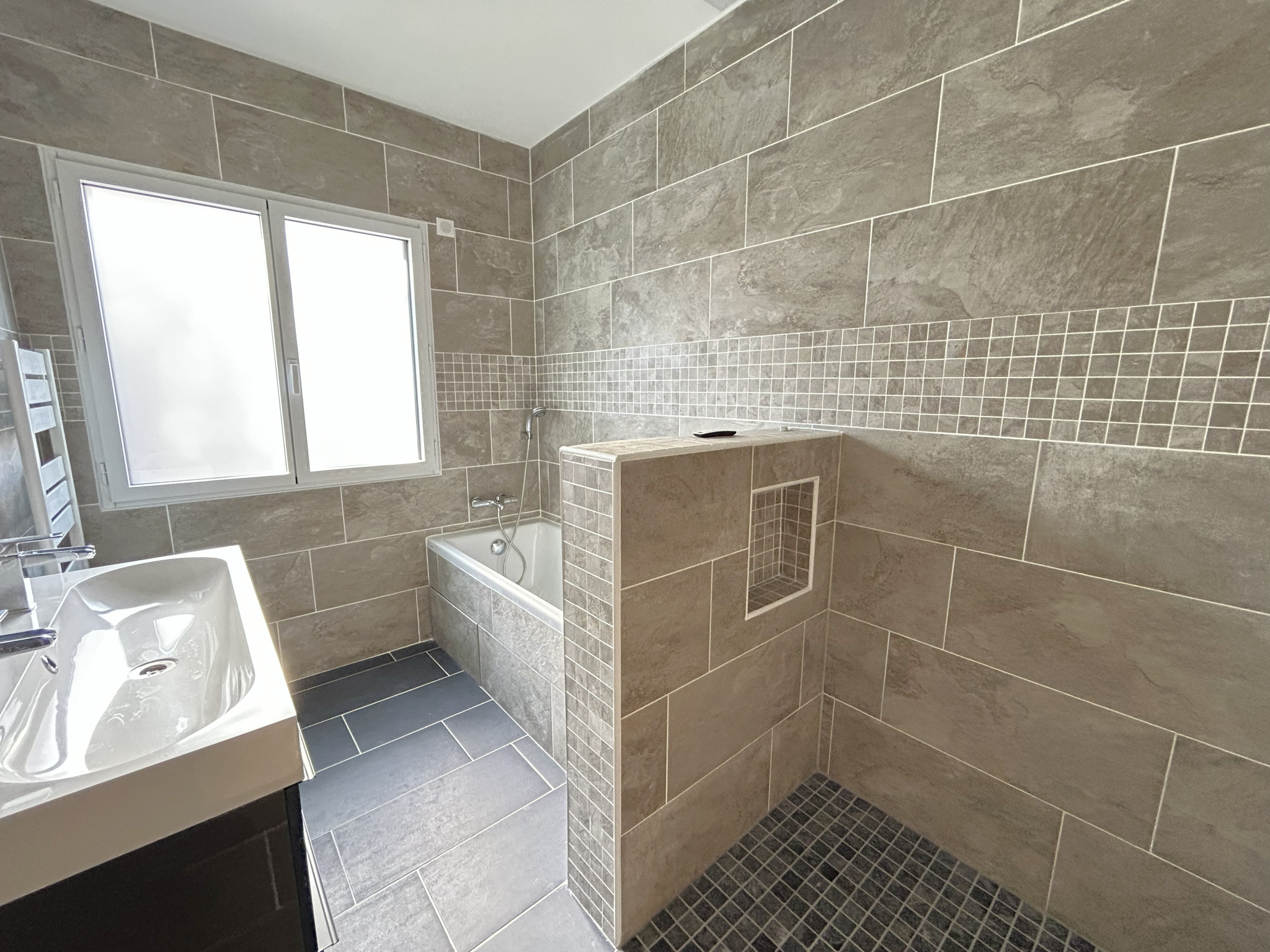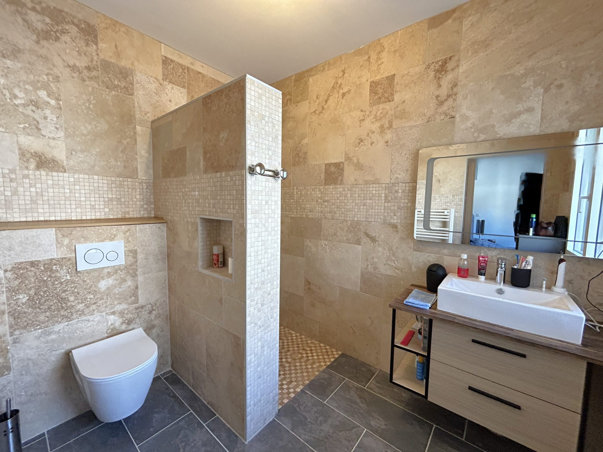 bain (et douche), une buanderie et un wc.