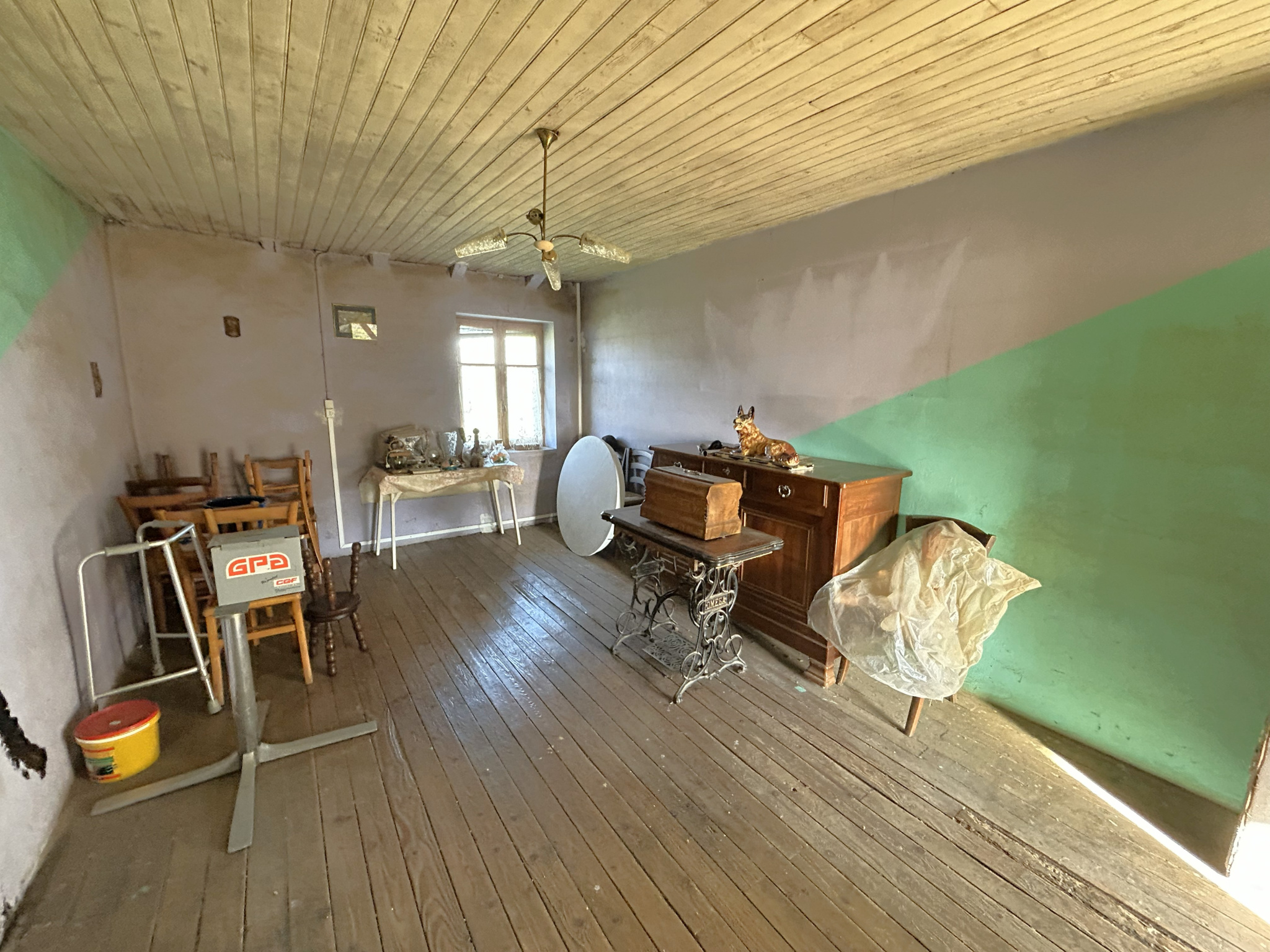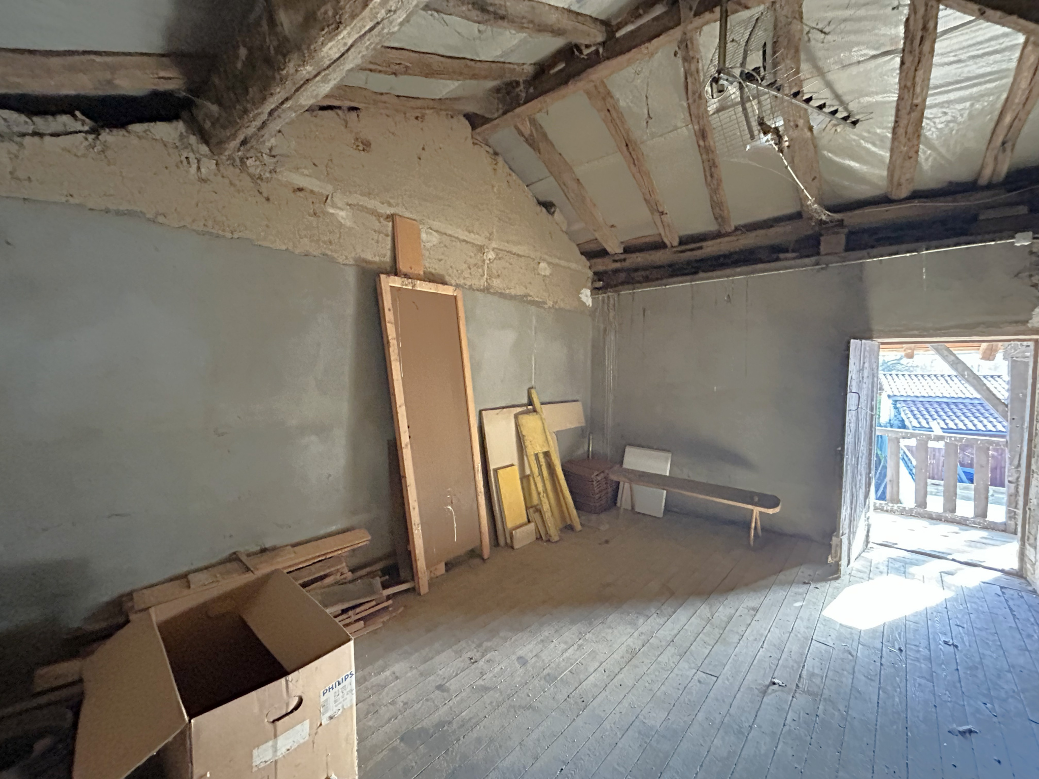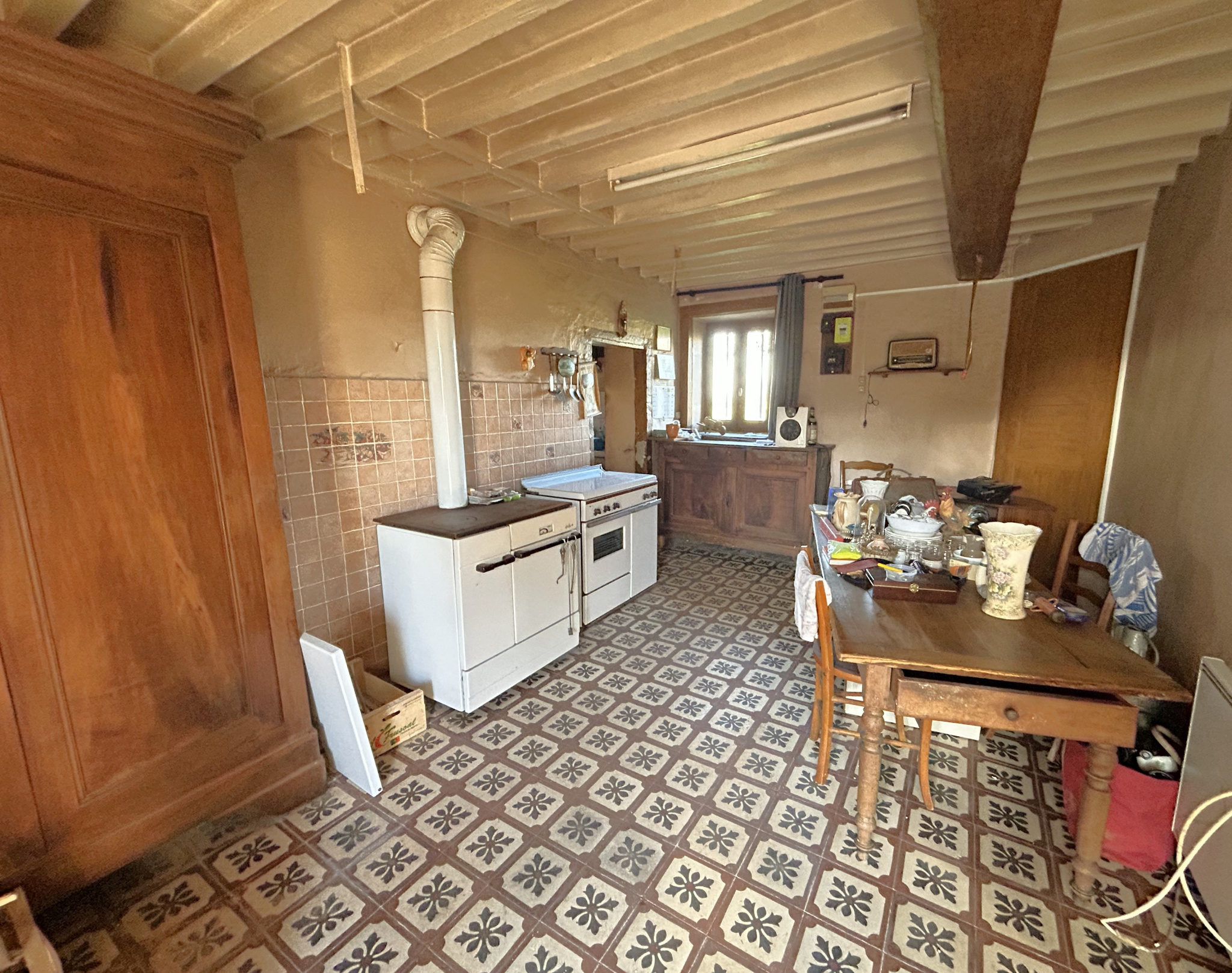 Elle se compose actuellement d’une cuisine, d’une chambre, d’une salle de bain et à l’étage une chambre et un grenier.