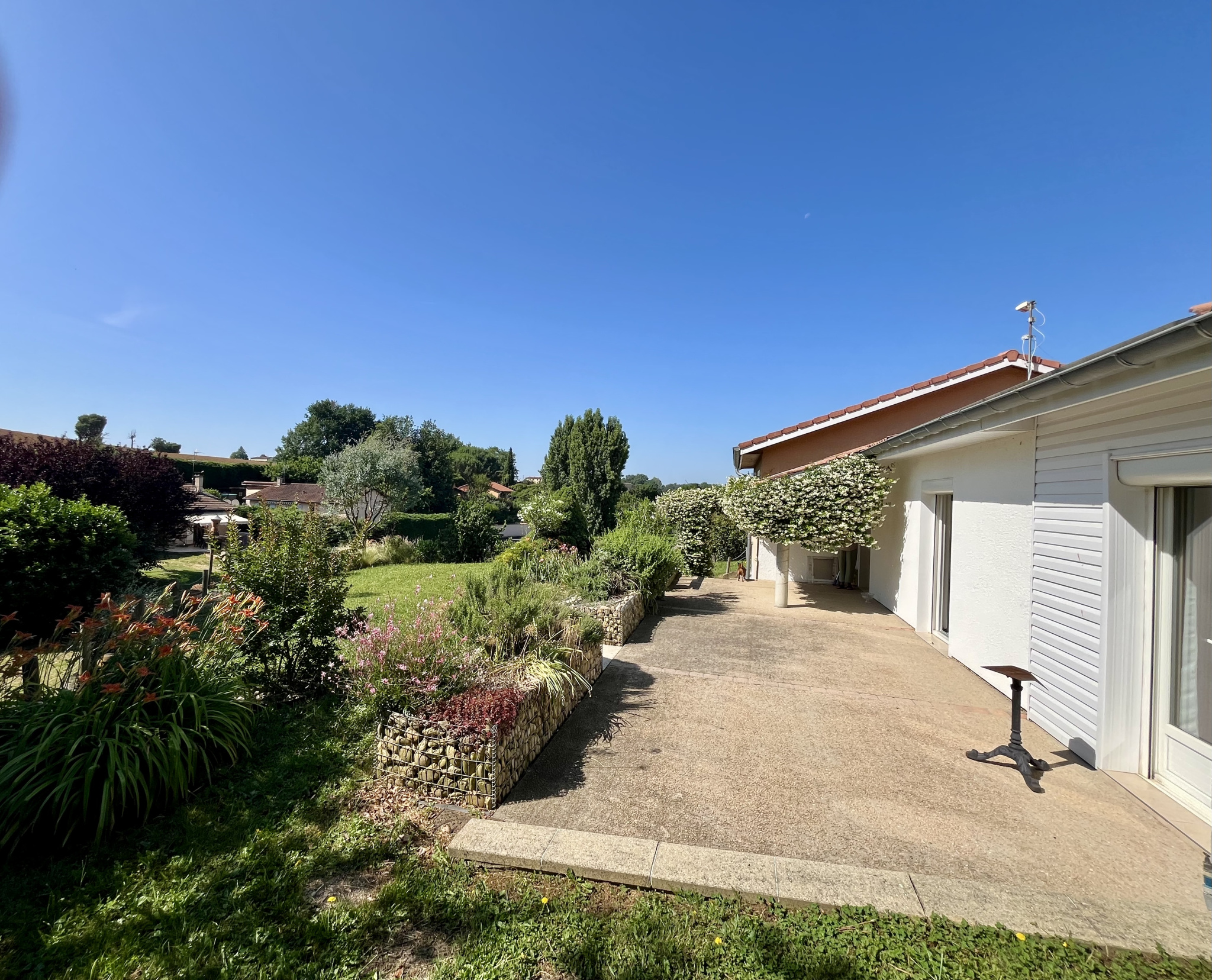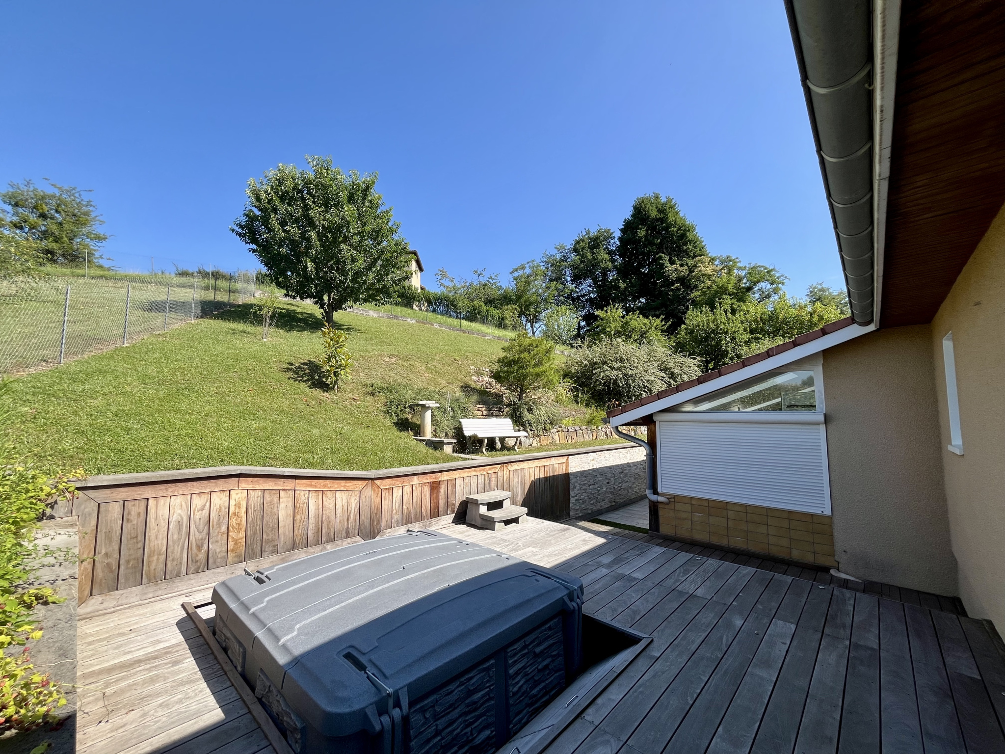 Située à Frans, au cœur d’un environnement naturel préservé et en fond d’impasse, cette maison de 131 m2 habitables avec une véranda de 16 m2 et garage double de 50 m2. Entièrement de plain-pied, elle propose une spacieuse pièce de vie baignée de lumière avec poêle à bois, une cuisine ouverte aménagée, quatre chambres climatisées, une salle d’eau moderne et de nombreux rangements. Le terrain de 1230 m2, arboré et sans aucun vis-à-vis, accueille deux terrasses, un jacuzzi, un verger et un coin barbecue. Pensée pour le bien-être et l’économie d’énergie, la maison dispose de panneaux photovoltaïques très rentables, de la climatisation réversible, d’un cumulus thermodynamique, d’un adoucisseur d’eau, du double vitrage et de volets roulants électriques. Classée DPE B, elle ne nécessite aucun travaux. Un bien rare, à seulement 2 minutes du centre de Frans.