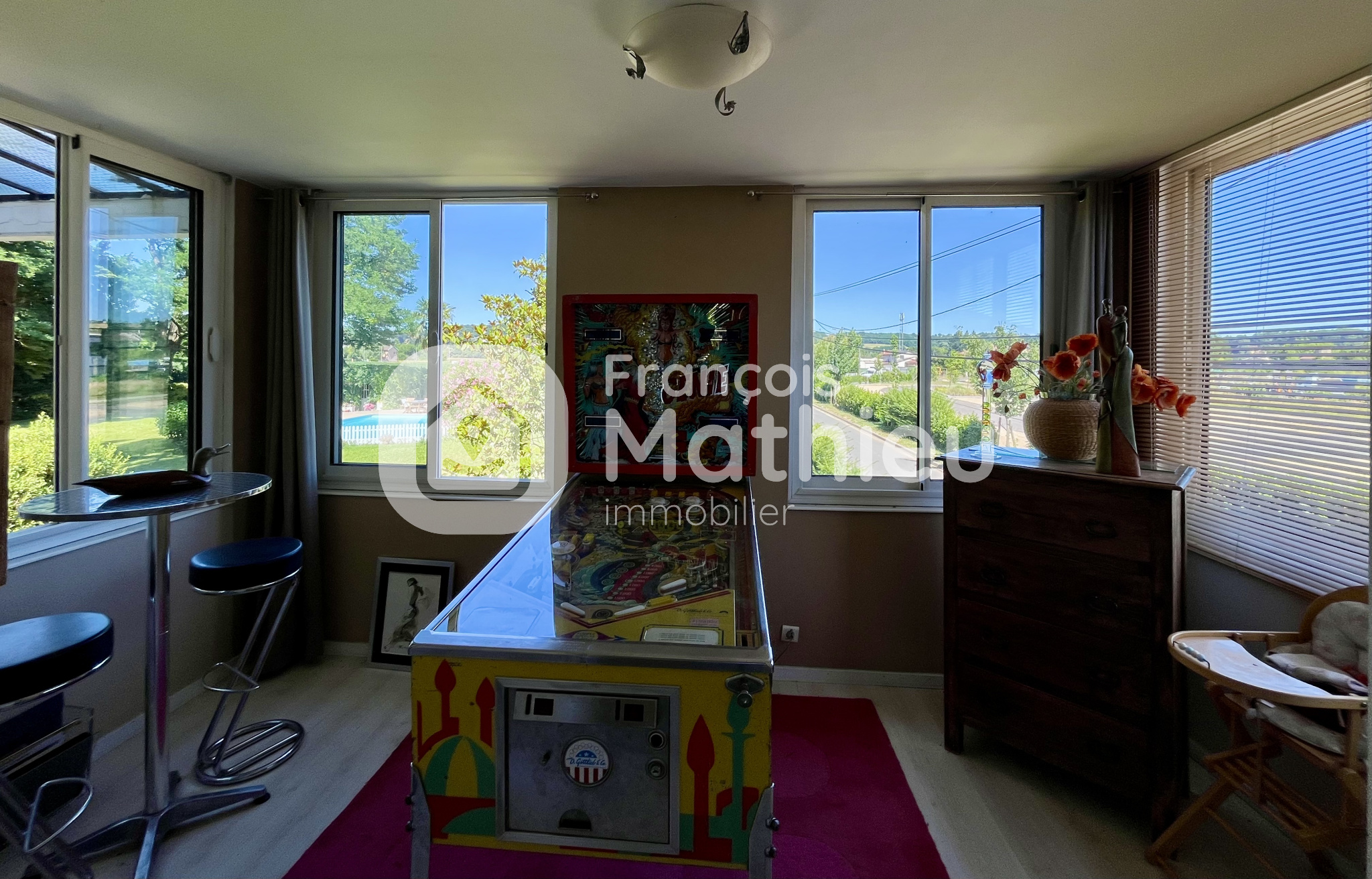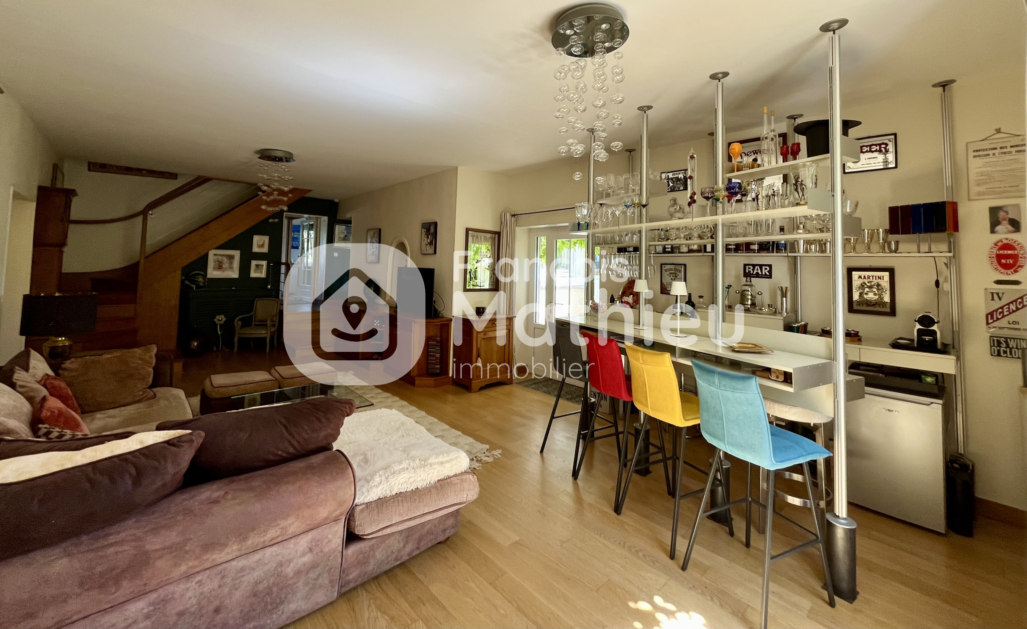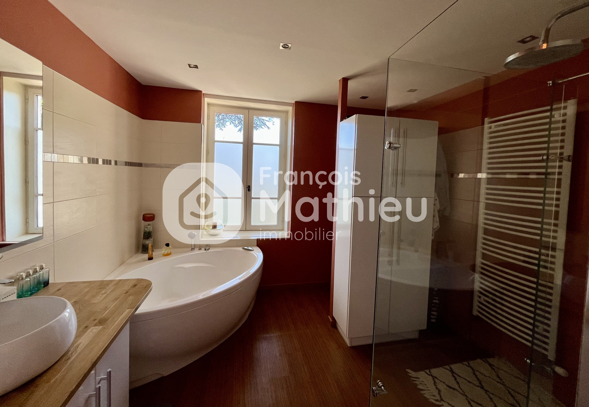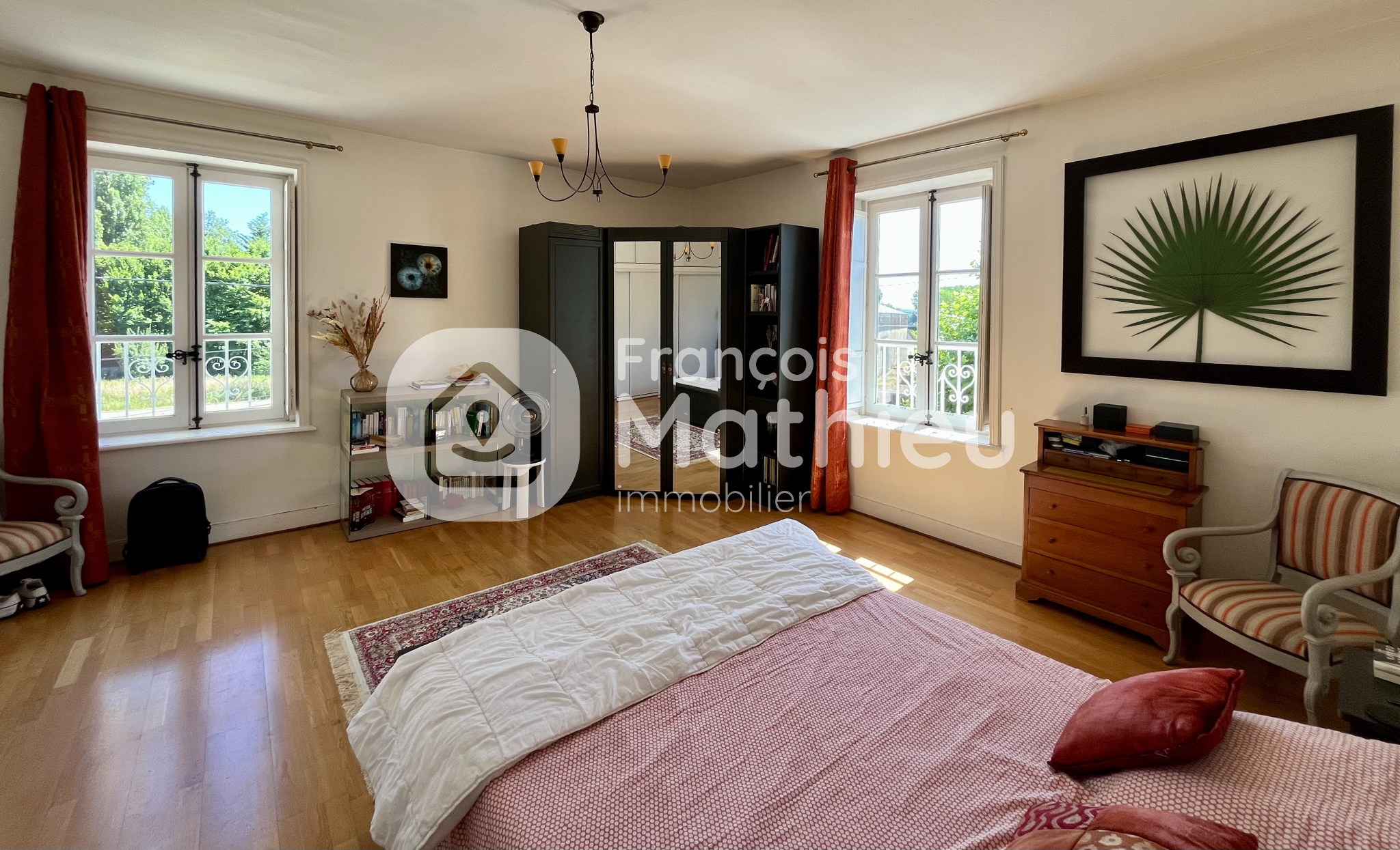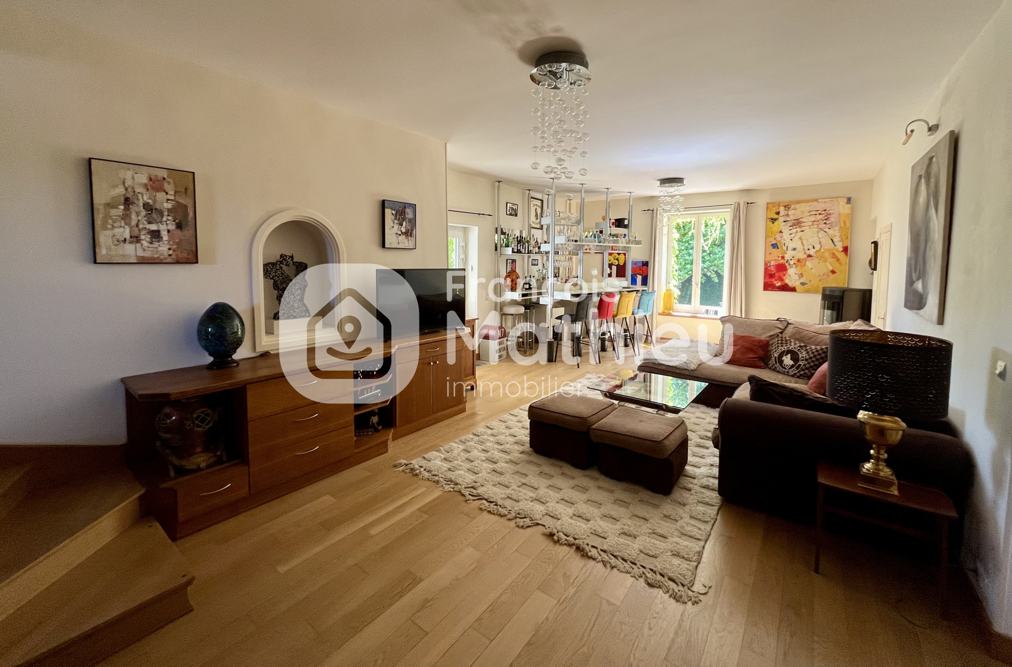 Située dans un environnement calme et verdoyant à Reyrieux, cette superbe maison bourgeoise de 224 m2 habitables allie le cachet de l’ancien à des prestations modernes.Au rez-de-chaussée, vous découvrirez de vastes espaces de vie baignés de lumière, une cuisine ouverte entièrement équipée, un grand salon ainsi qu’une salle à manger avec cheminée, le tout ouvrant sur une large terrasse. Une salle d’eau, une buanderie et une pièce polyvalente pouvant servir de bureau, de salle de jeux ou de chambre d’appoint complètent ce niveau. Un WC indépendant et de nombreux espaces de rangement viennent compléter ce niveau.