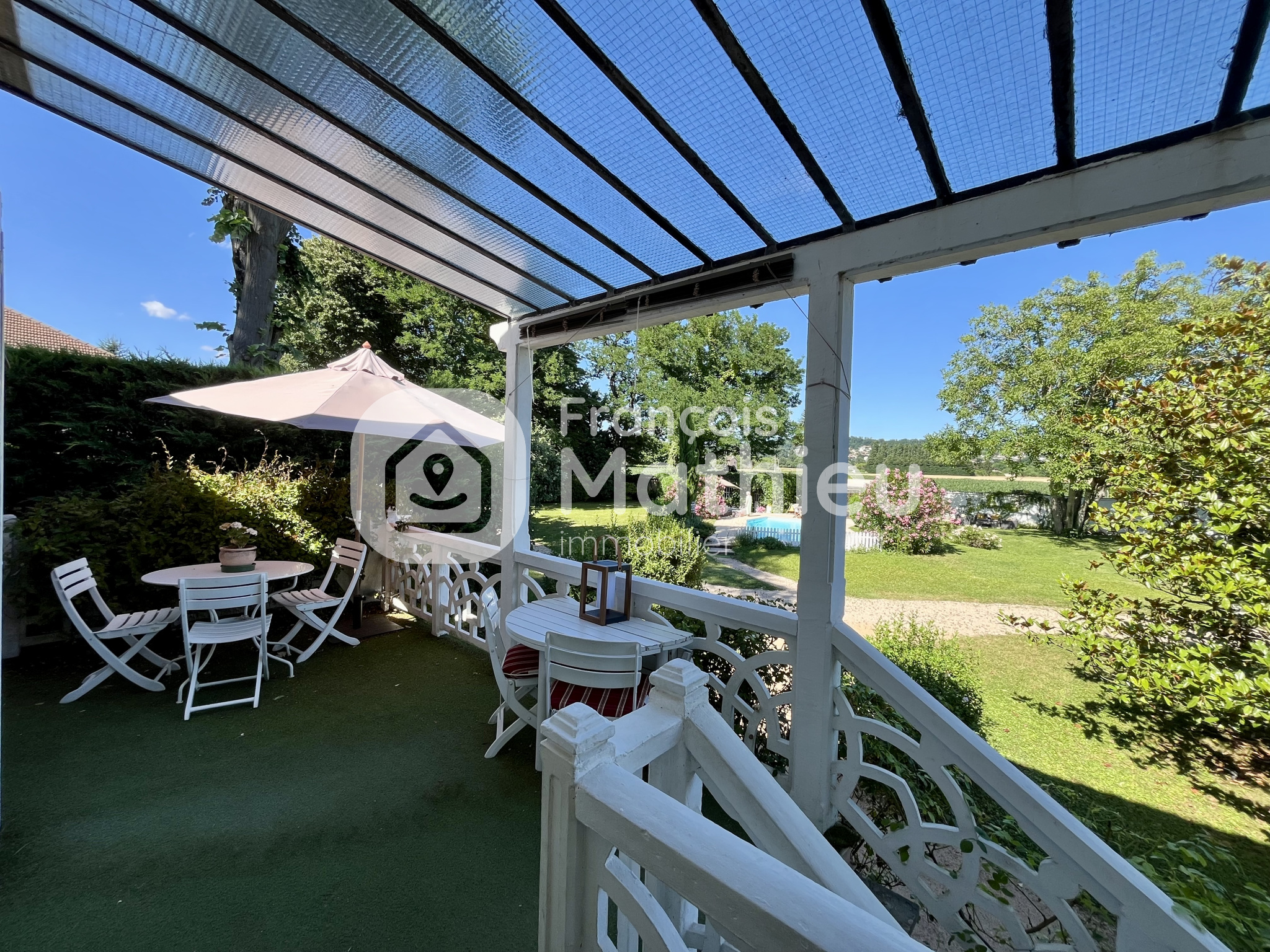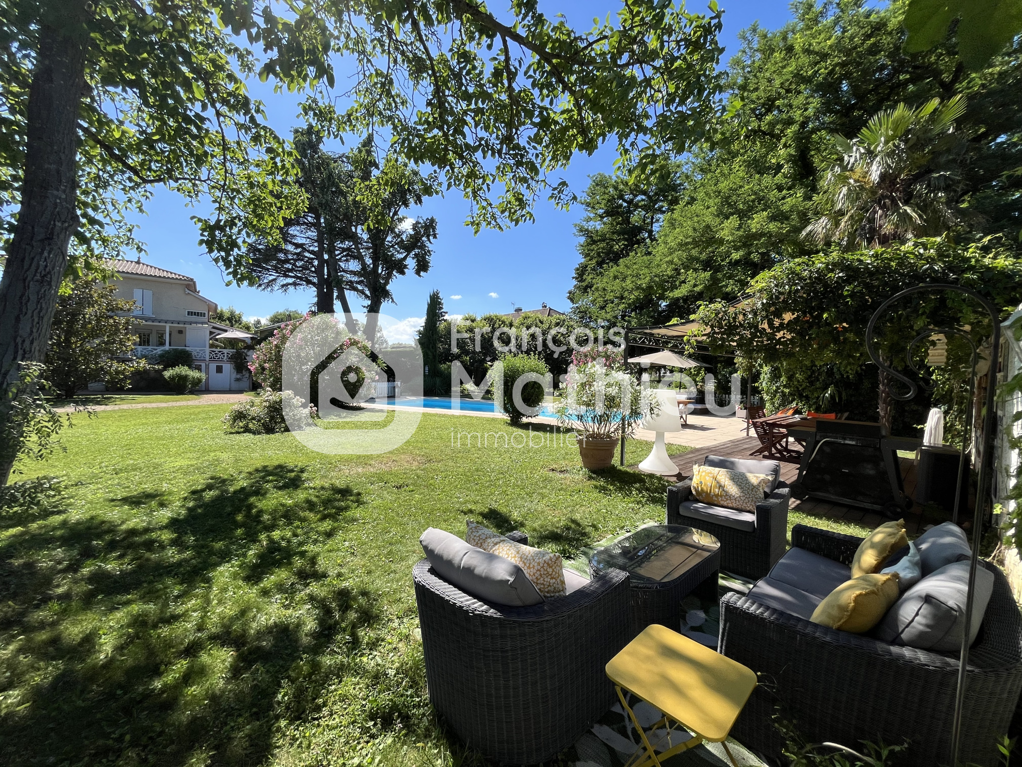 Le terrain, magnifiquement arboré,offre une atmosphère paisible et intime. Des arbres centenaires viennent enrichir ce cadre naturel exceptionnel. Une grande piscine et espace détente promet des moments de relaxation en toute saison.