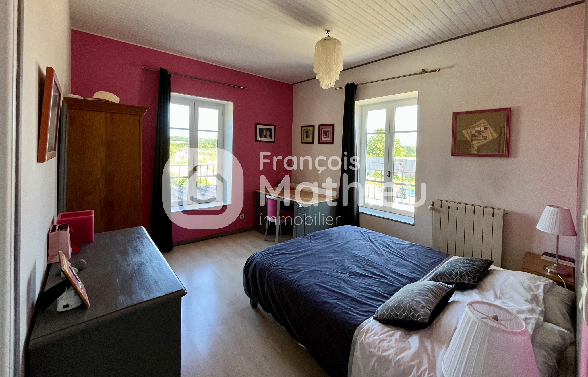 À l’étage, vous trouverez quatre grandes chambres, dont une belle suite parentale, ainsi qu’une salle de bains et un WC.