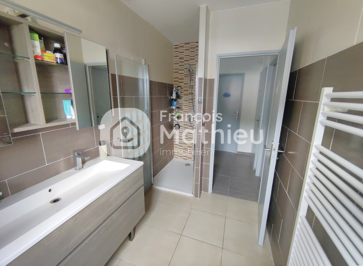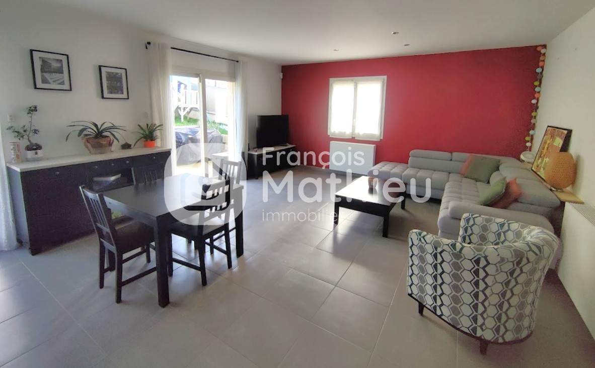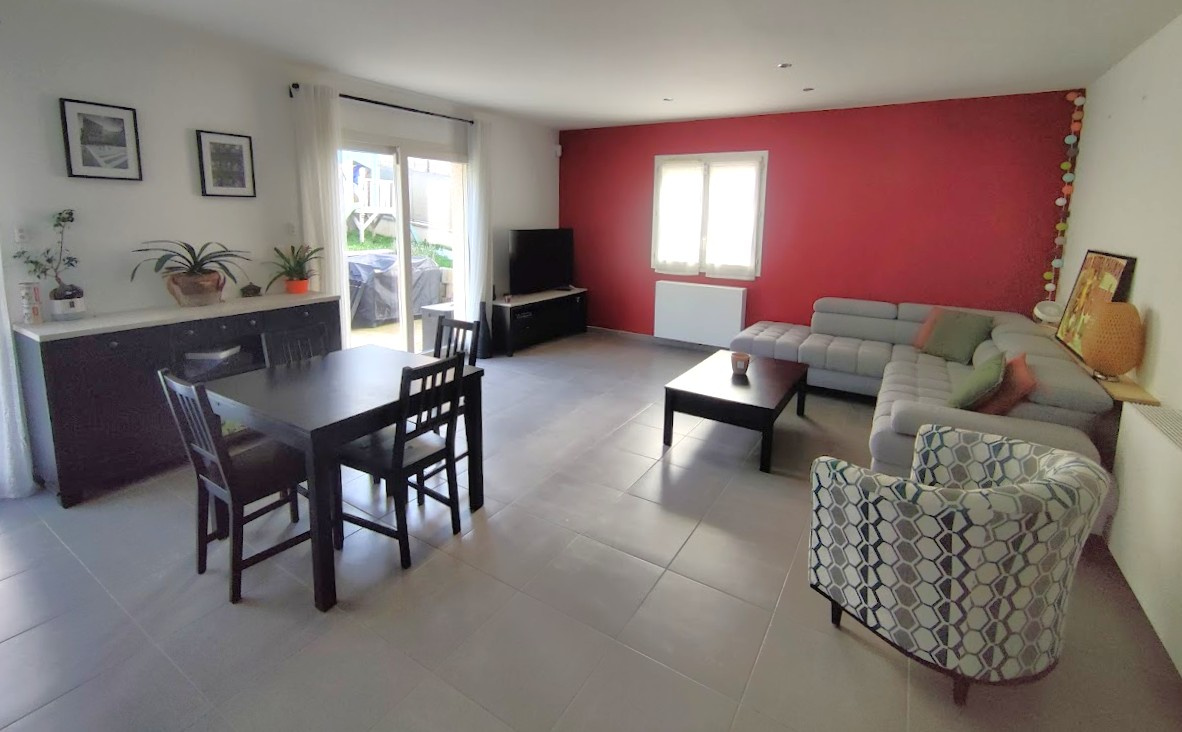 Une maison fonctionnelle qui se compose d’un espace entrée, d’une cuisine ouverte équipée sur le séjour lumineux (triple exposition), d’un couloir desservant trois chambres, d’une salle d’eau avec double vasques, d’un cellier et d’un cabinet de toilette séparé. Un garage de 25 m2 vient compléter ce bien. A l’extérieur, cette maison vous offre une cour goudronnée, une terrasse au sud et un joli jardin aménagé.