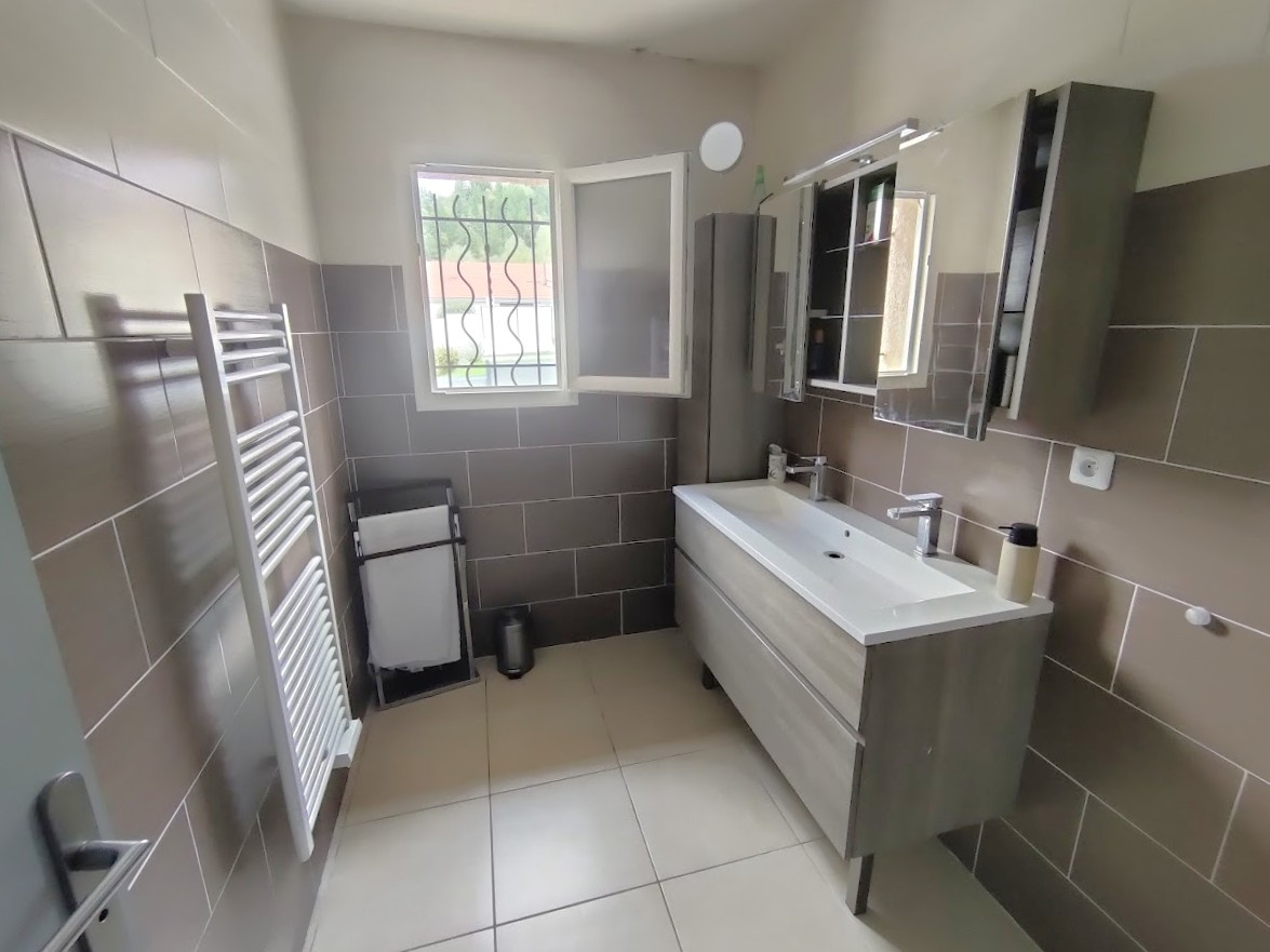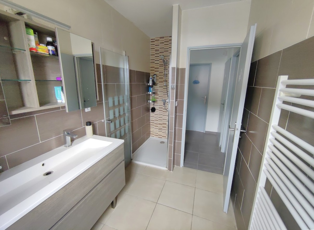 Côté technique, la maison est équipée d’une alarme, d’une pompe à chaleur avec radiateurs, de stores motorisés sur les baies vitrées, d’un portail électrique. Cette maison récente est toujours sous garantie décennale.