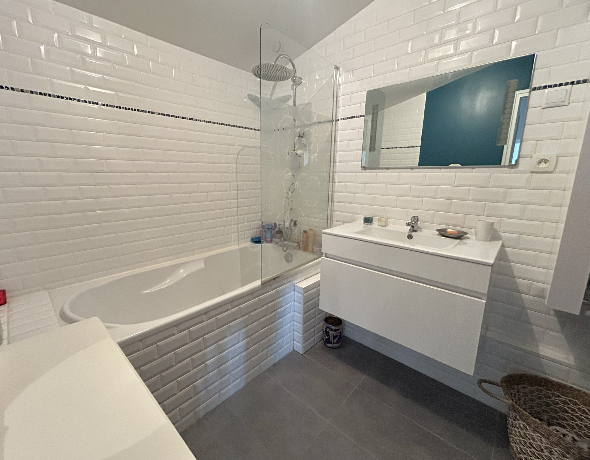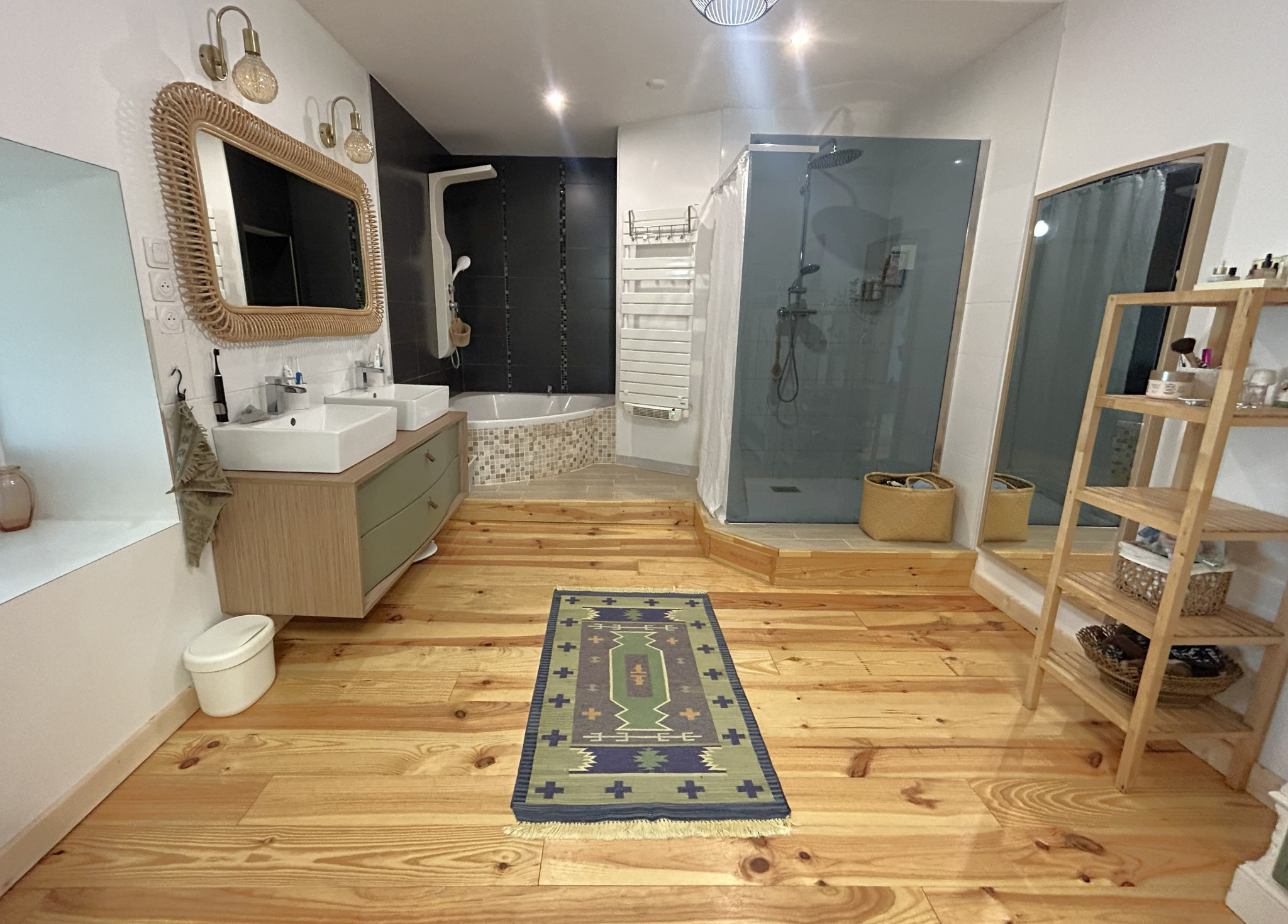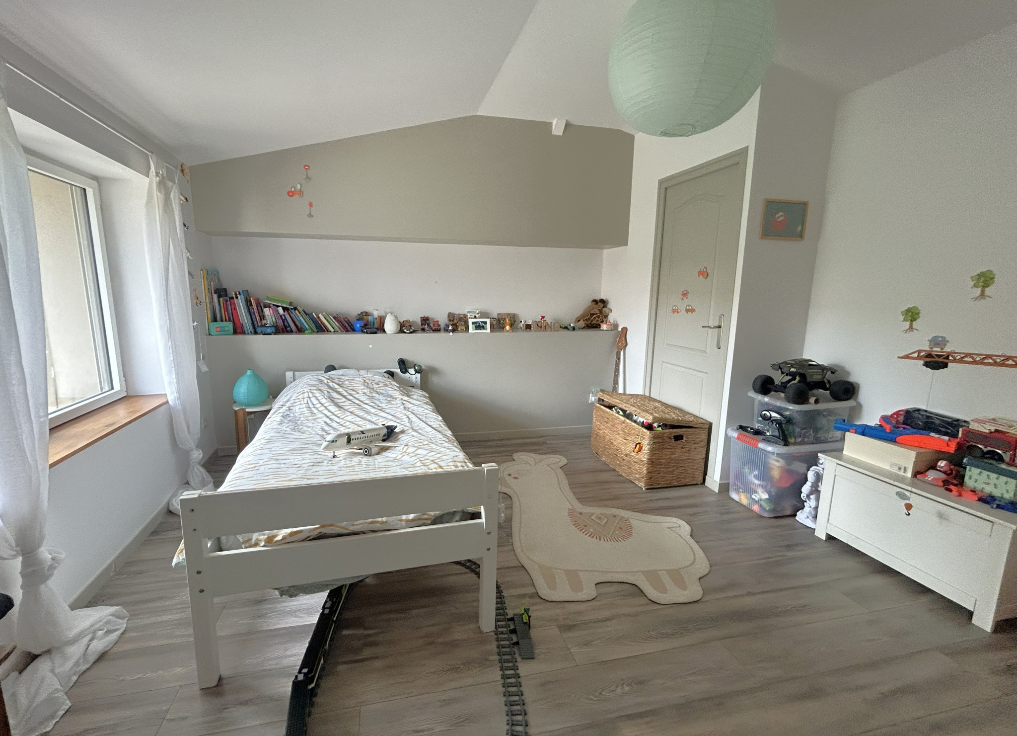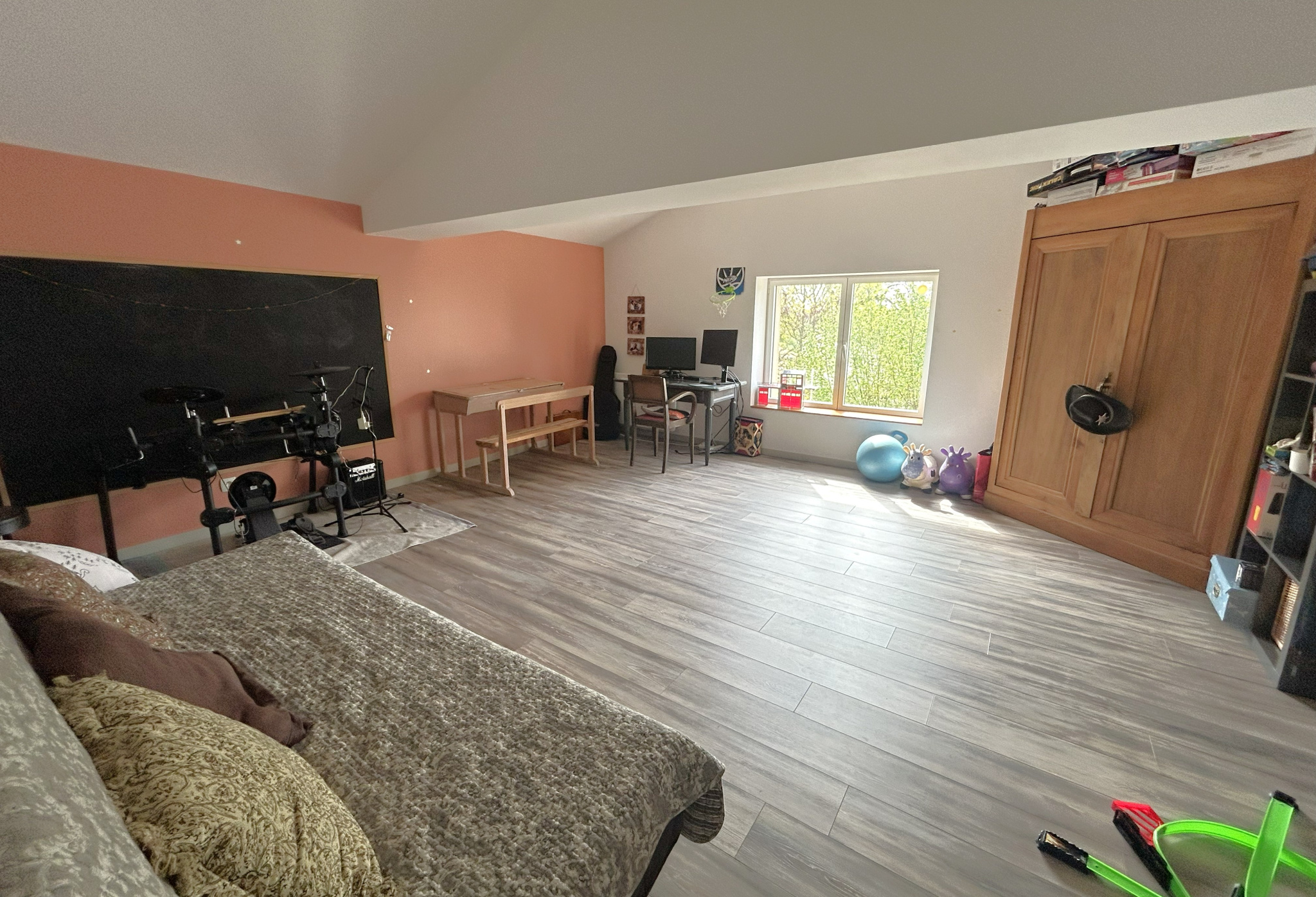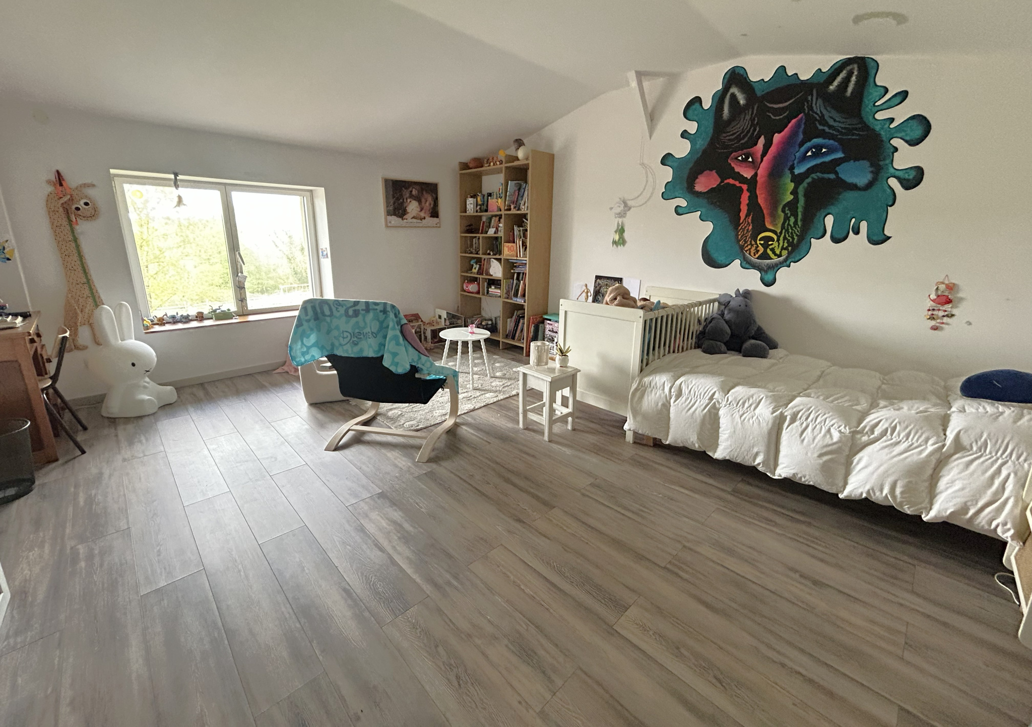 A l’étage un espace mezzanine pouvant être utilisé en salon/bureau, trois belles chambres, une salle de bain et un wc.