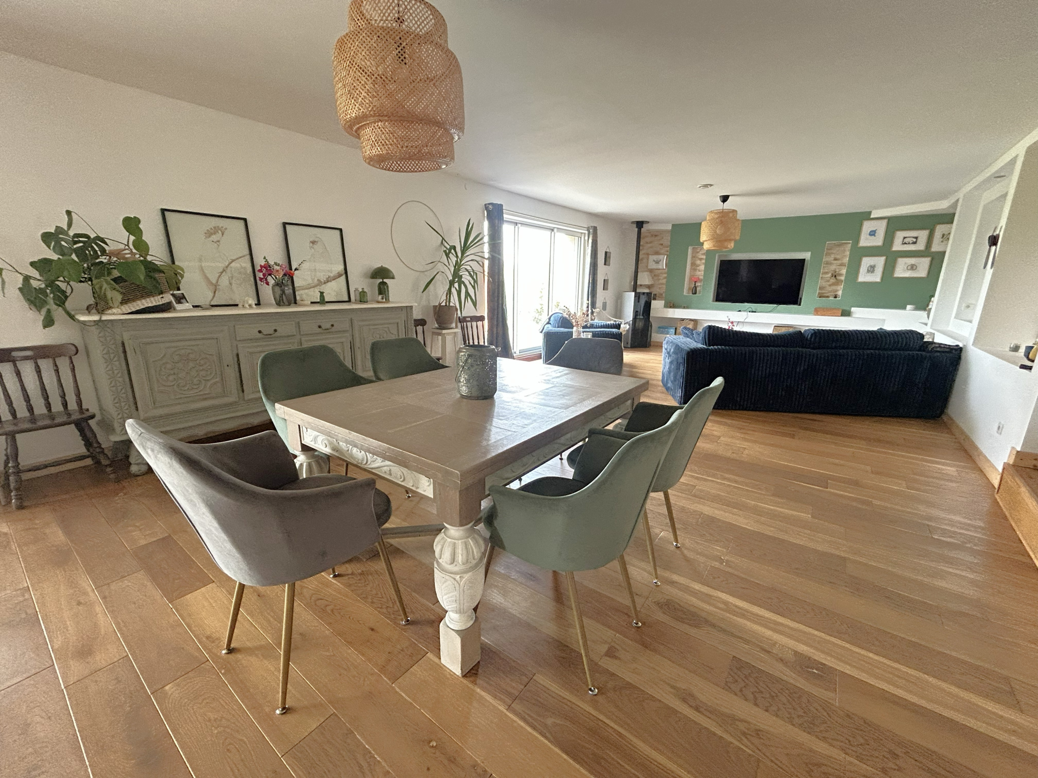 Ancien corps de ferme d’environ 250m2 qui se compose au rez-de-chaussée d’une belle entrée avec placard, une lumineuse cuisine équipée, une grande pièce de vie avec salon/séjour (environ 75m2), une chambre avec dressing, une sallle de bain(et douche), une buanderie et un wc.