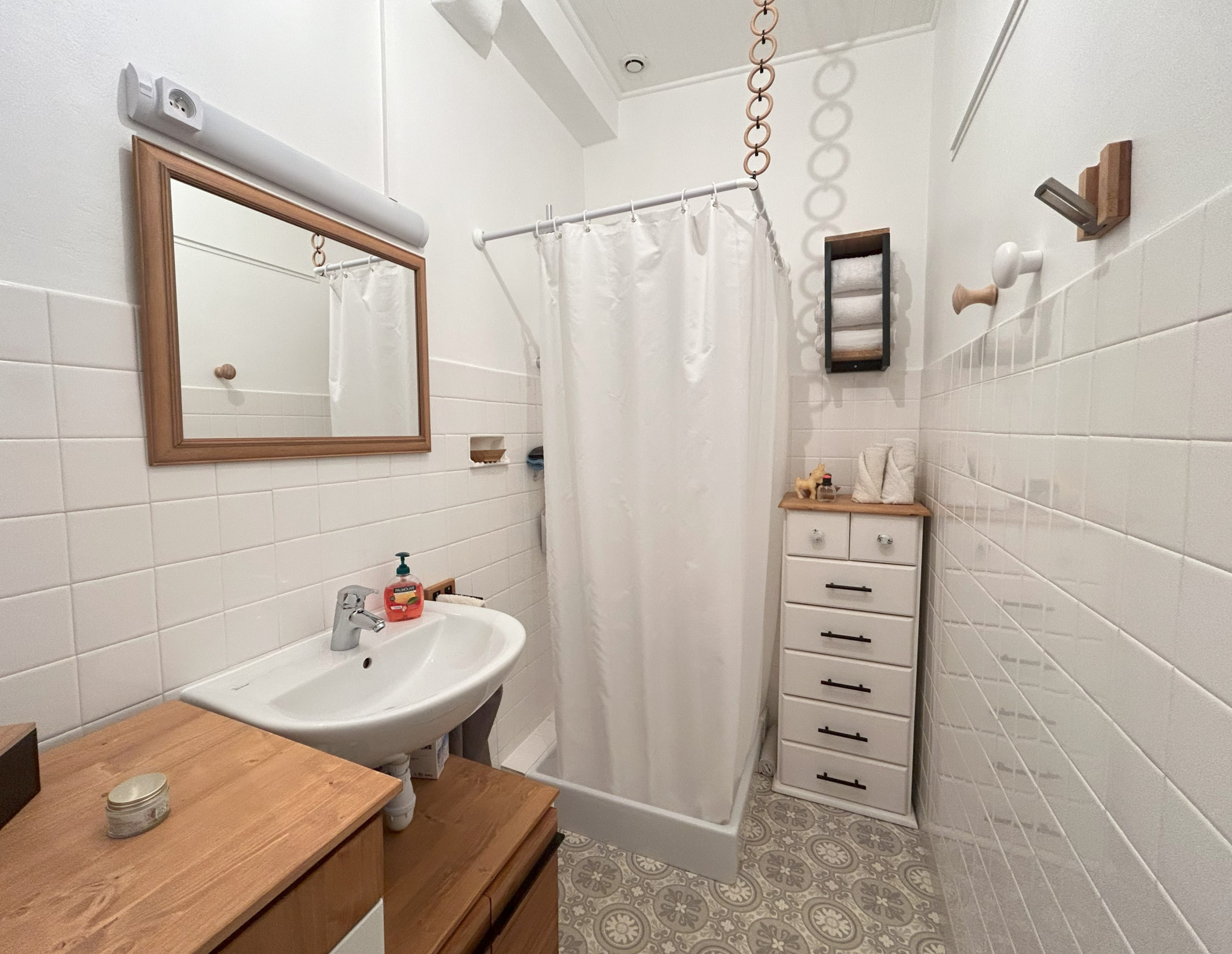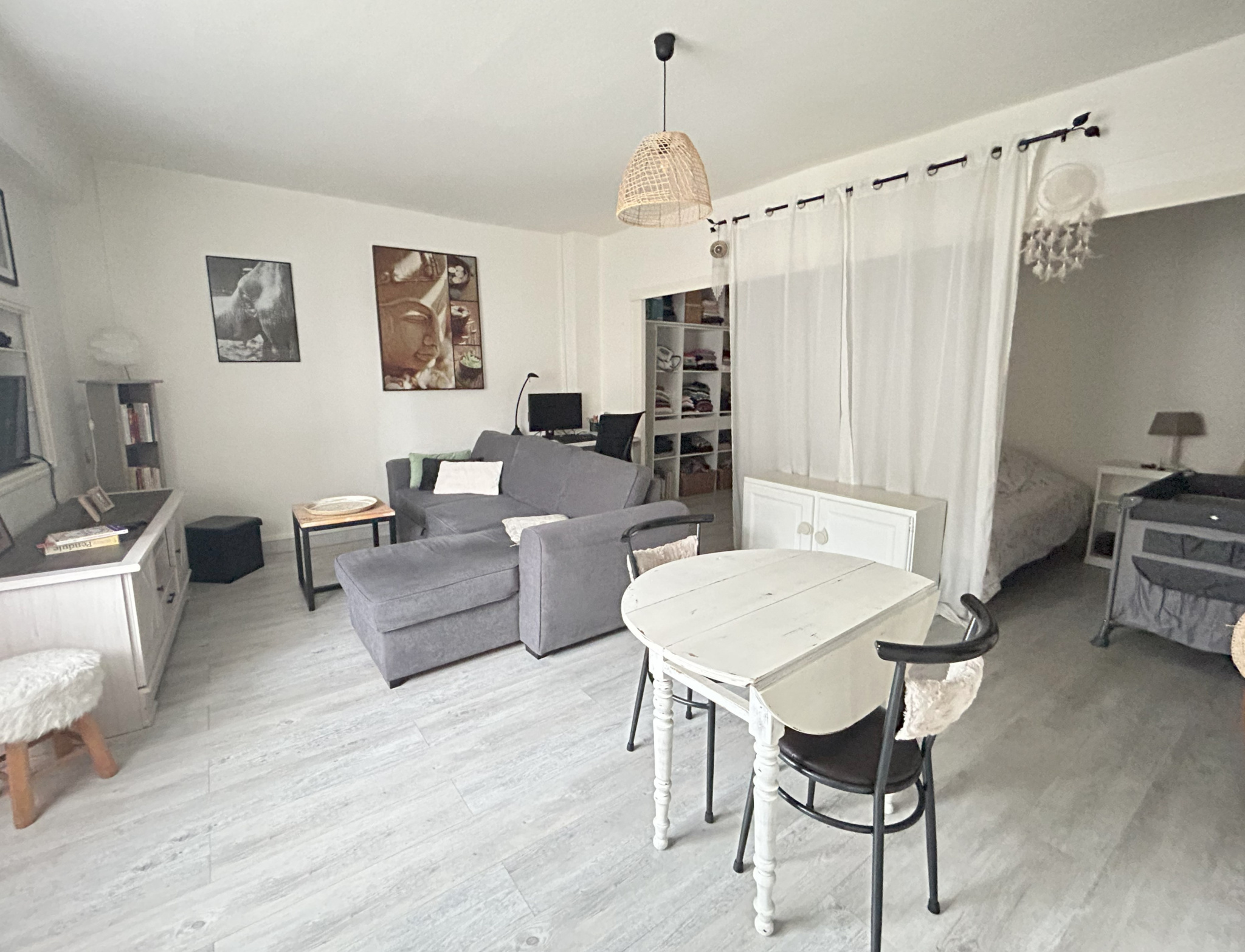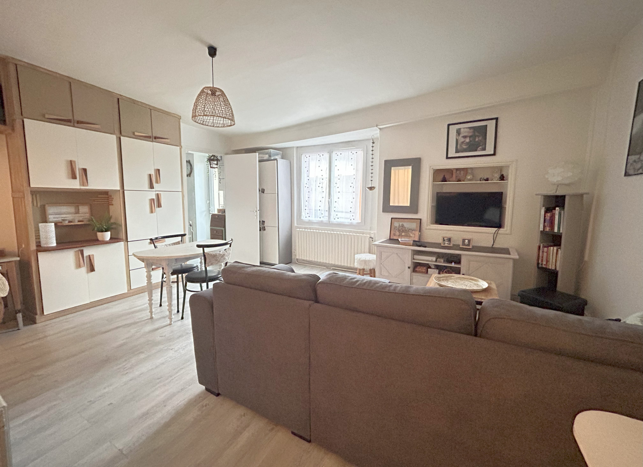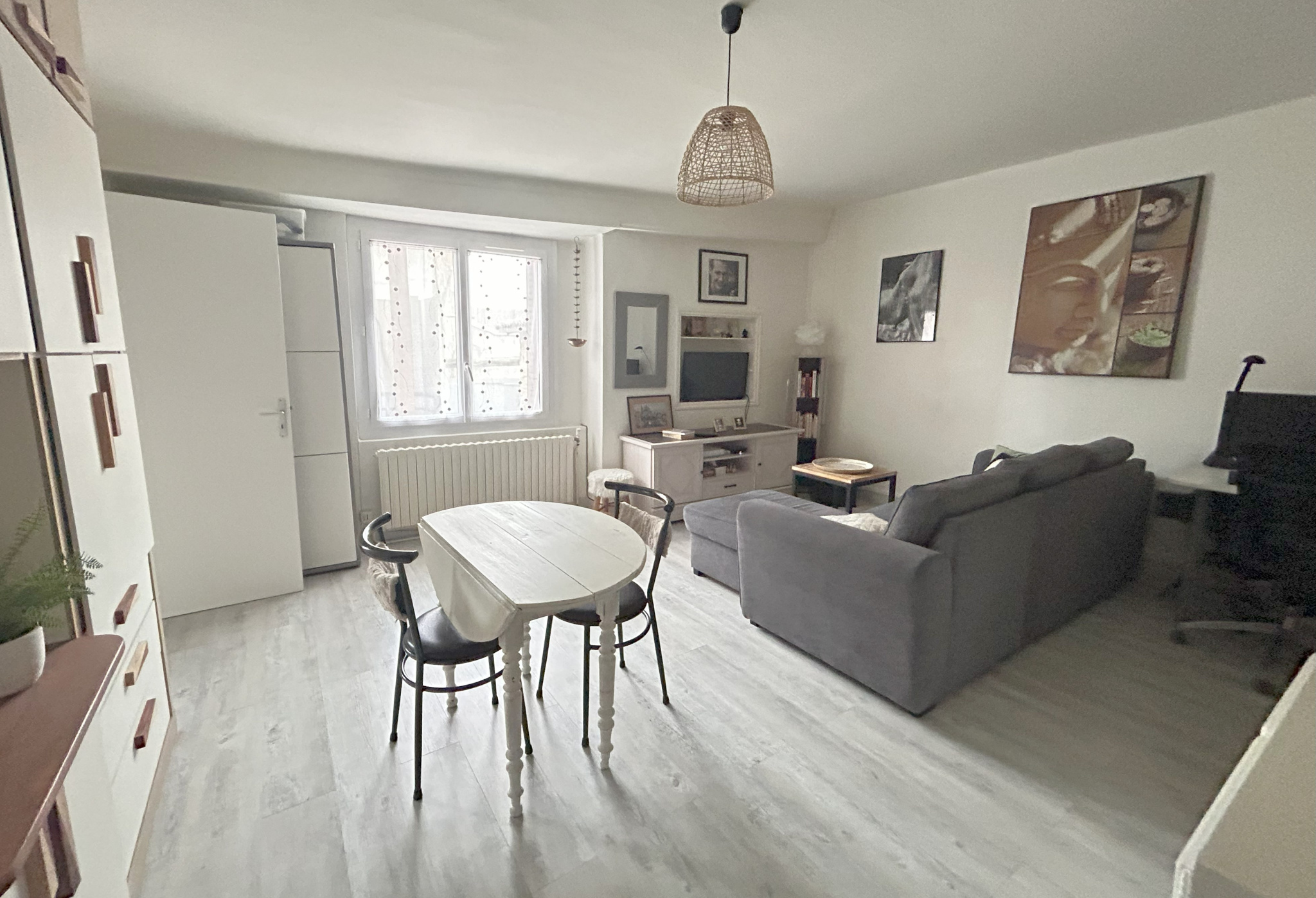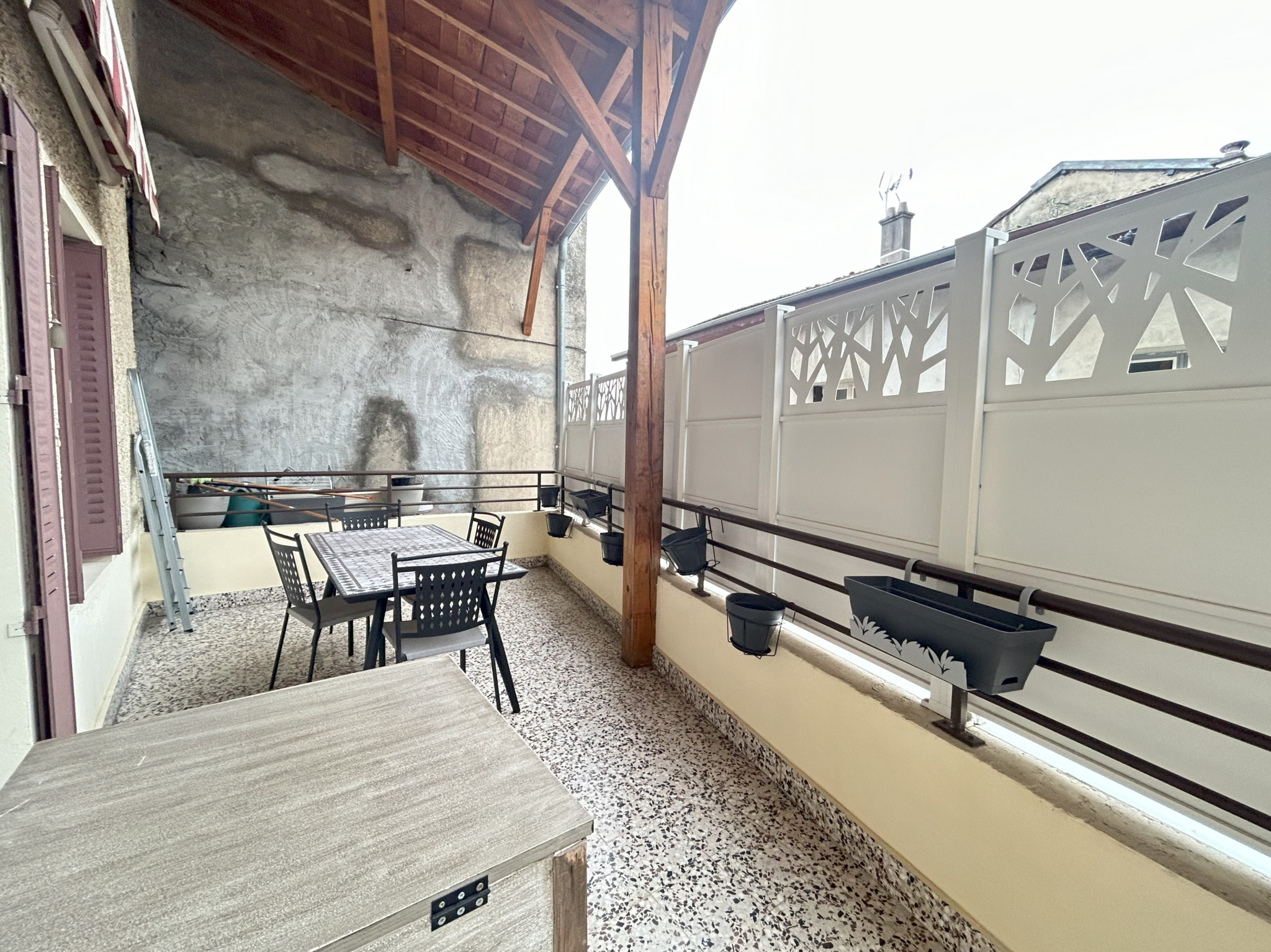 Exclusivité François Mathieu Immobilier – Maison de village T2 d’environ 57m2 avec terrasse, garage, atelier et grenier aménageable.