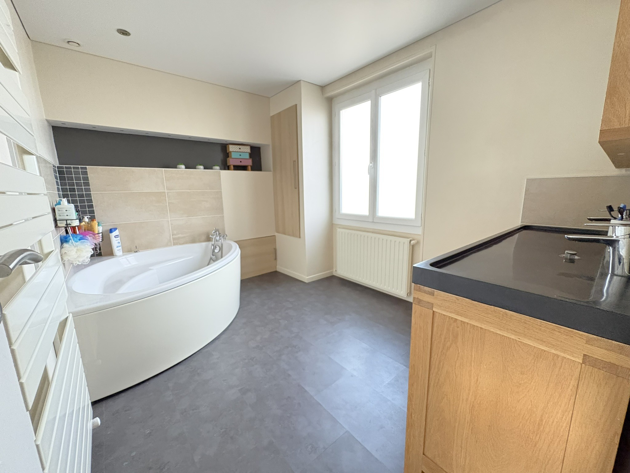 Au rez-de-chaussée une buanderie, un grand garage et un bureau.