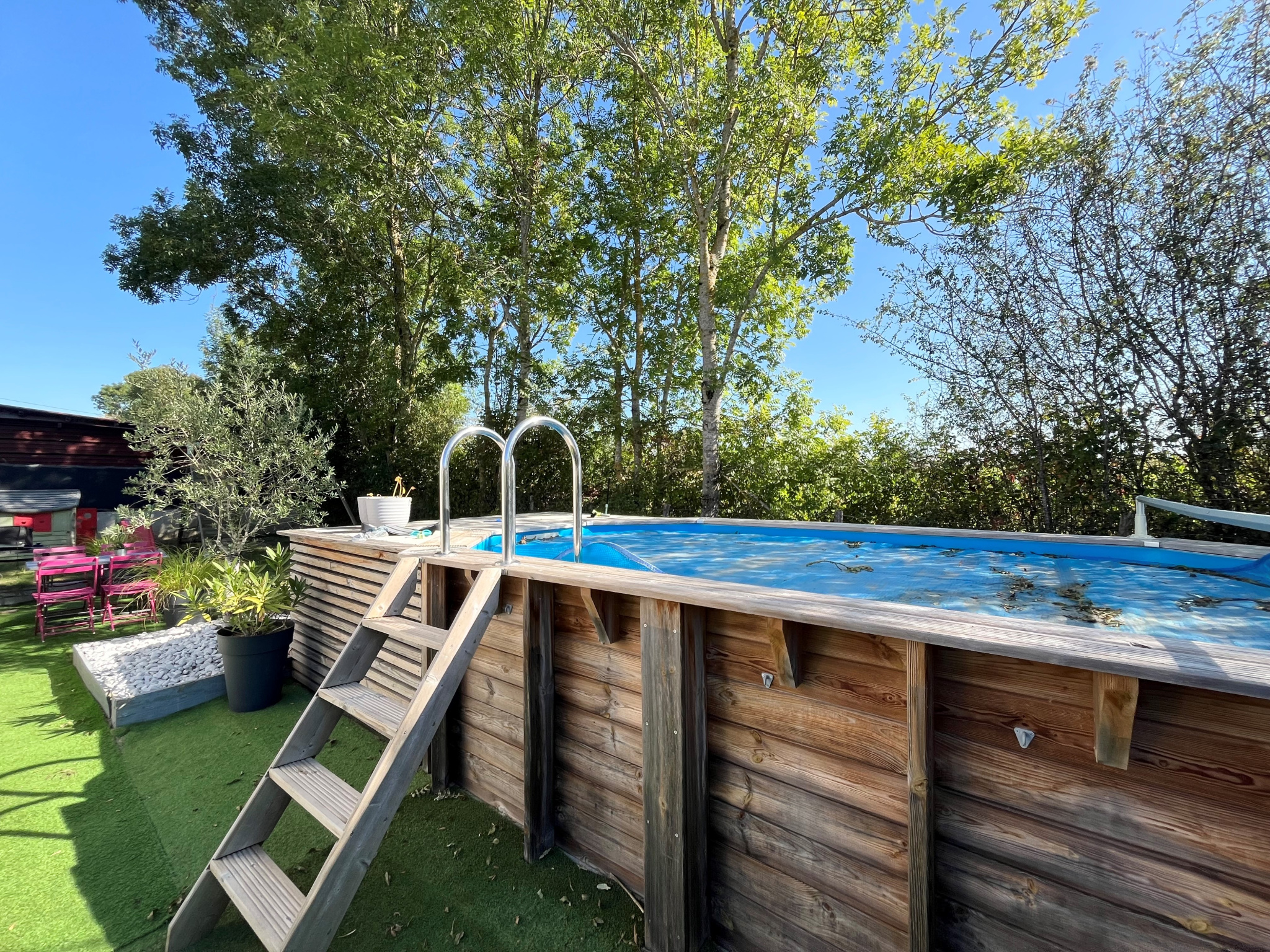 Elle se compose au rez de chaussée d’une entrée avec rangement, un séjour/salle à manger donnant sur cuisine ouverte équipée, une buanderie et une chambre avec salle de douche.