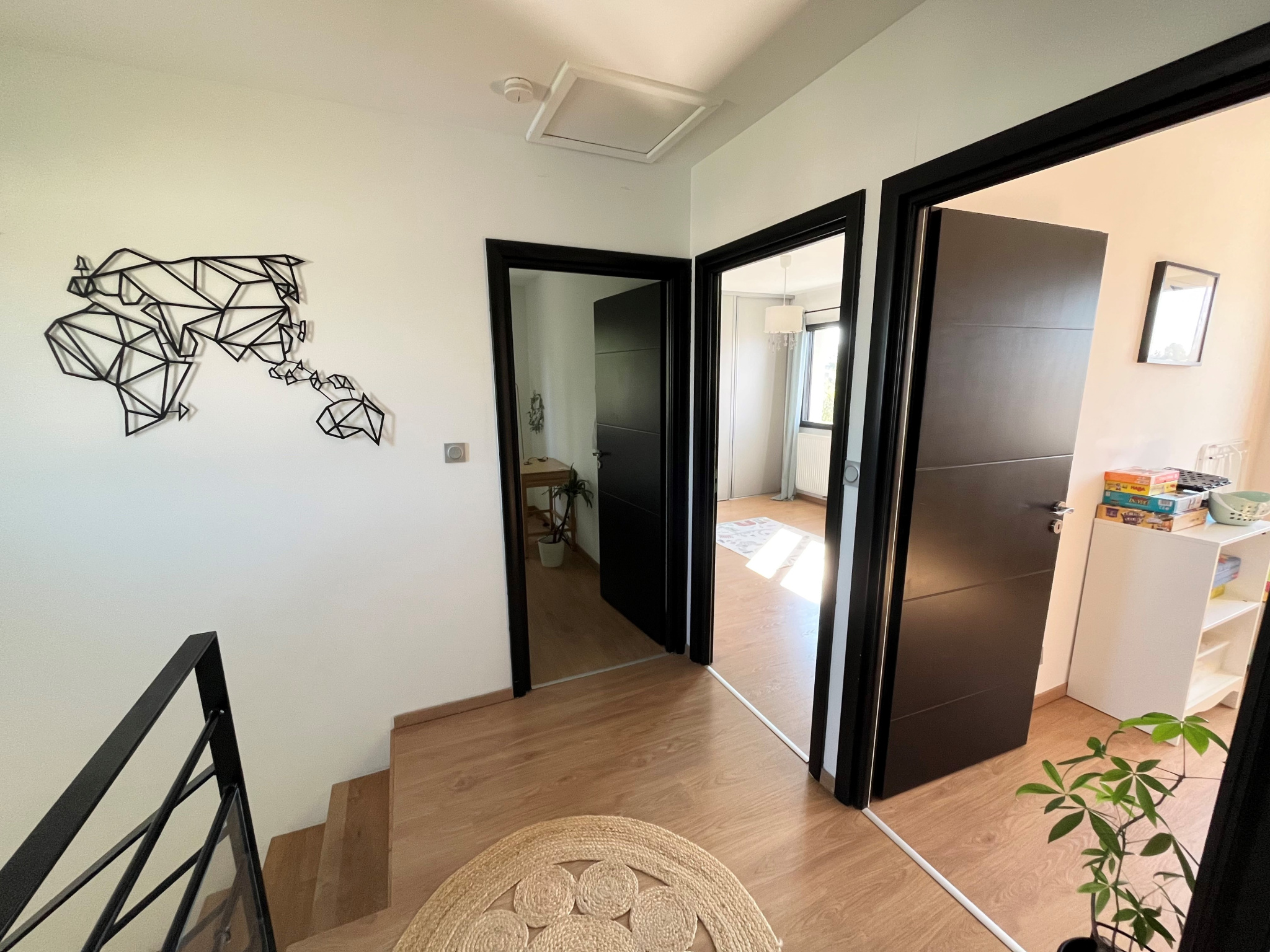 Située sur la commune de Saint André de Corcy (commerces, écoles, gare TER, …), au calme dans une impasse, venez découvrir cette maison d’environ 119m2 habitables édifiée en 2018 (RT 2012) sur sa parcelle de 455m2.