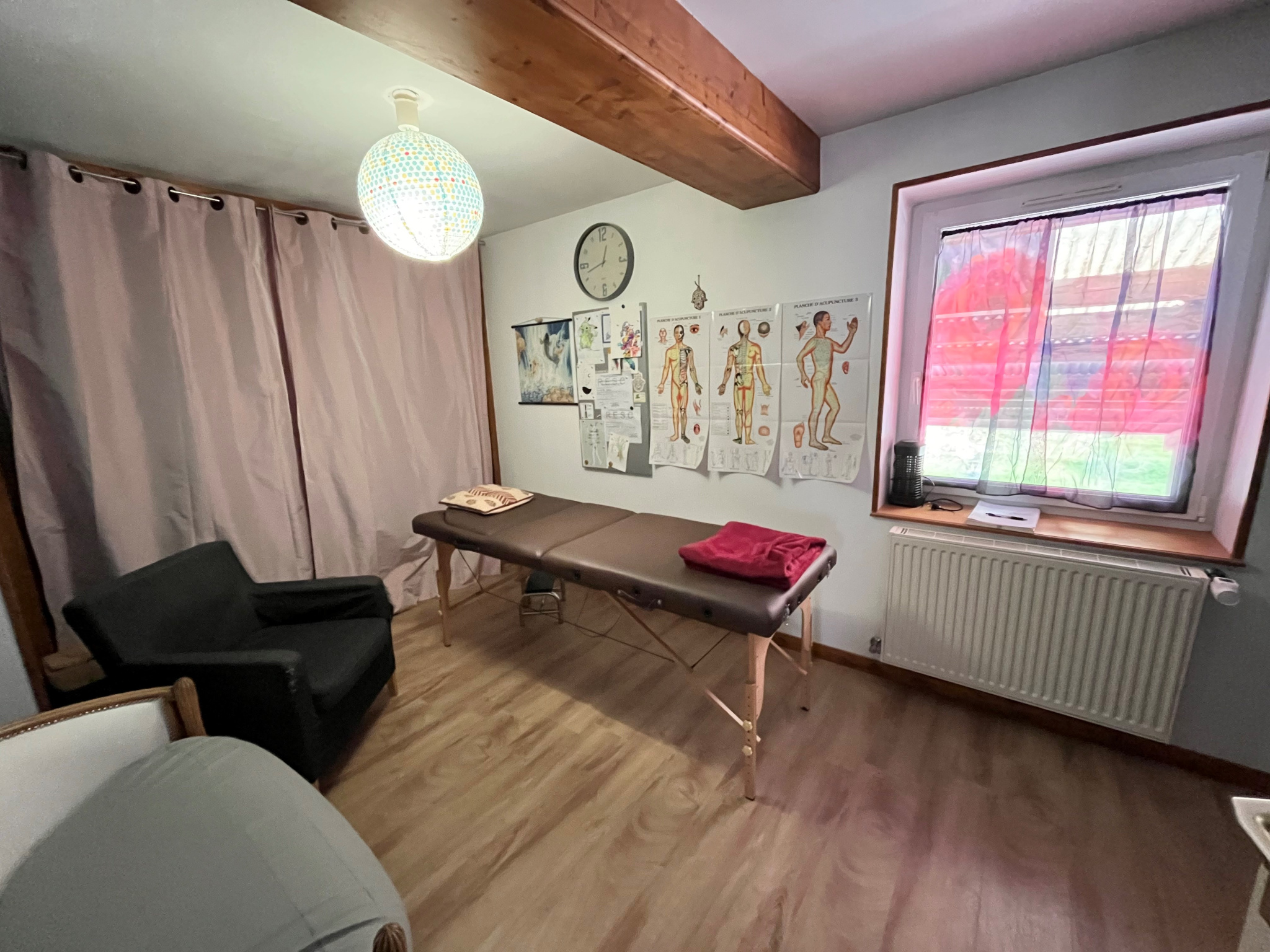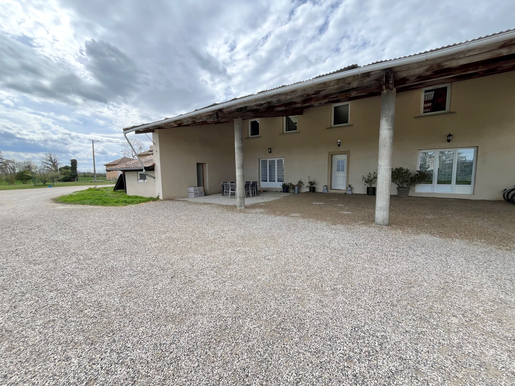 A l’extérieur, une chaufferie / buanderie avec point d’eau, une terrasse couverte d’environ 100m2 , une grange attenante à rénover (possibilité de faire communiquer avec la maison) et une cour sur l’entrée.