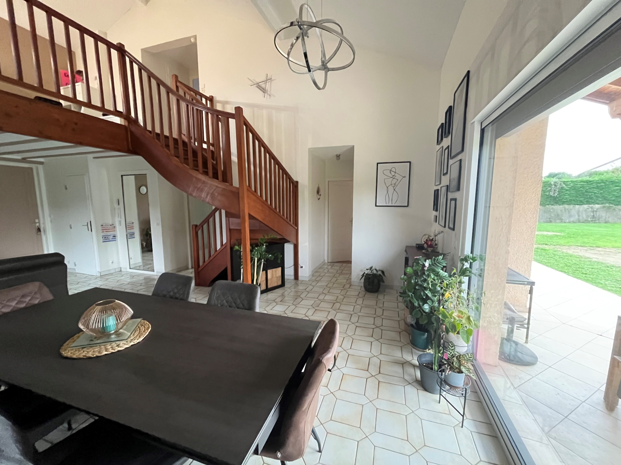Située sur la commune de Tramoyes, dans un environnement calme et hors lotissement, venez découvrir cette jolie maison d’environ 135m2 habitables + garage.