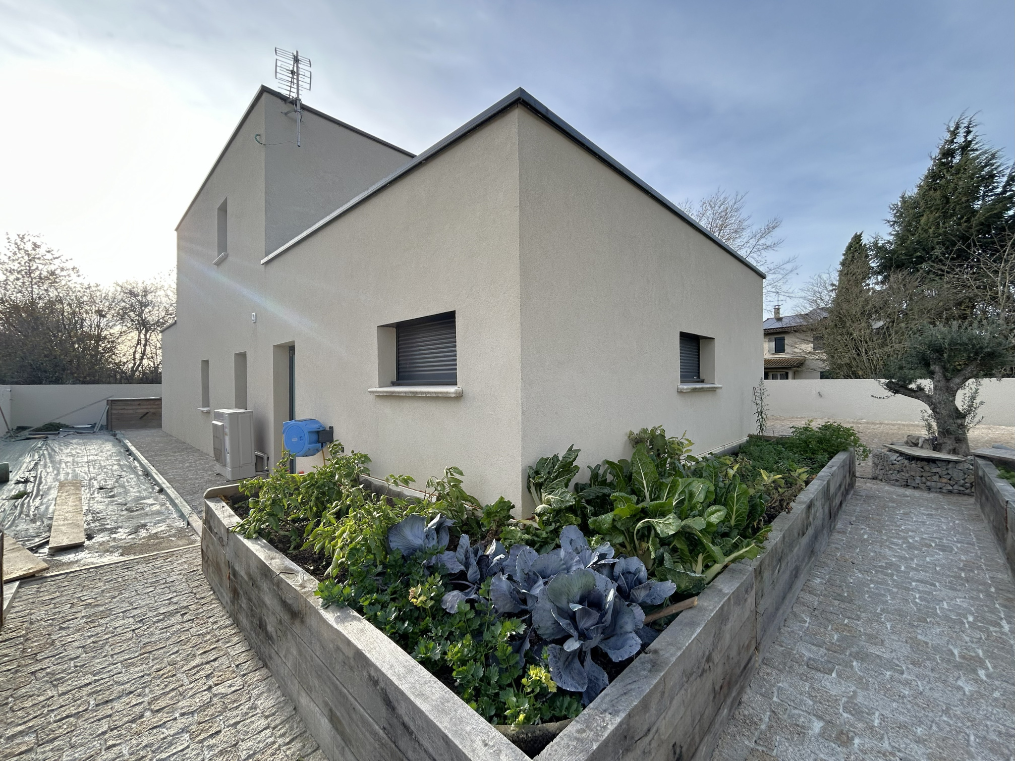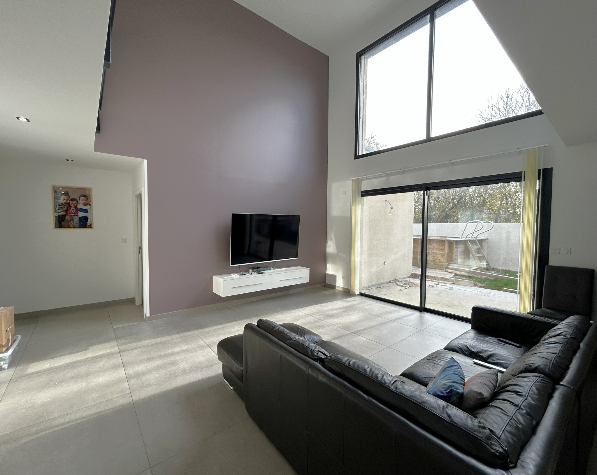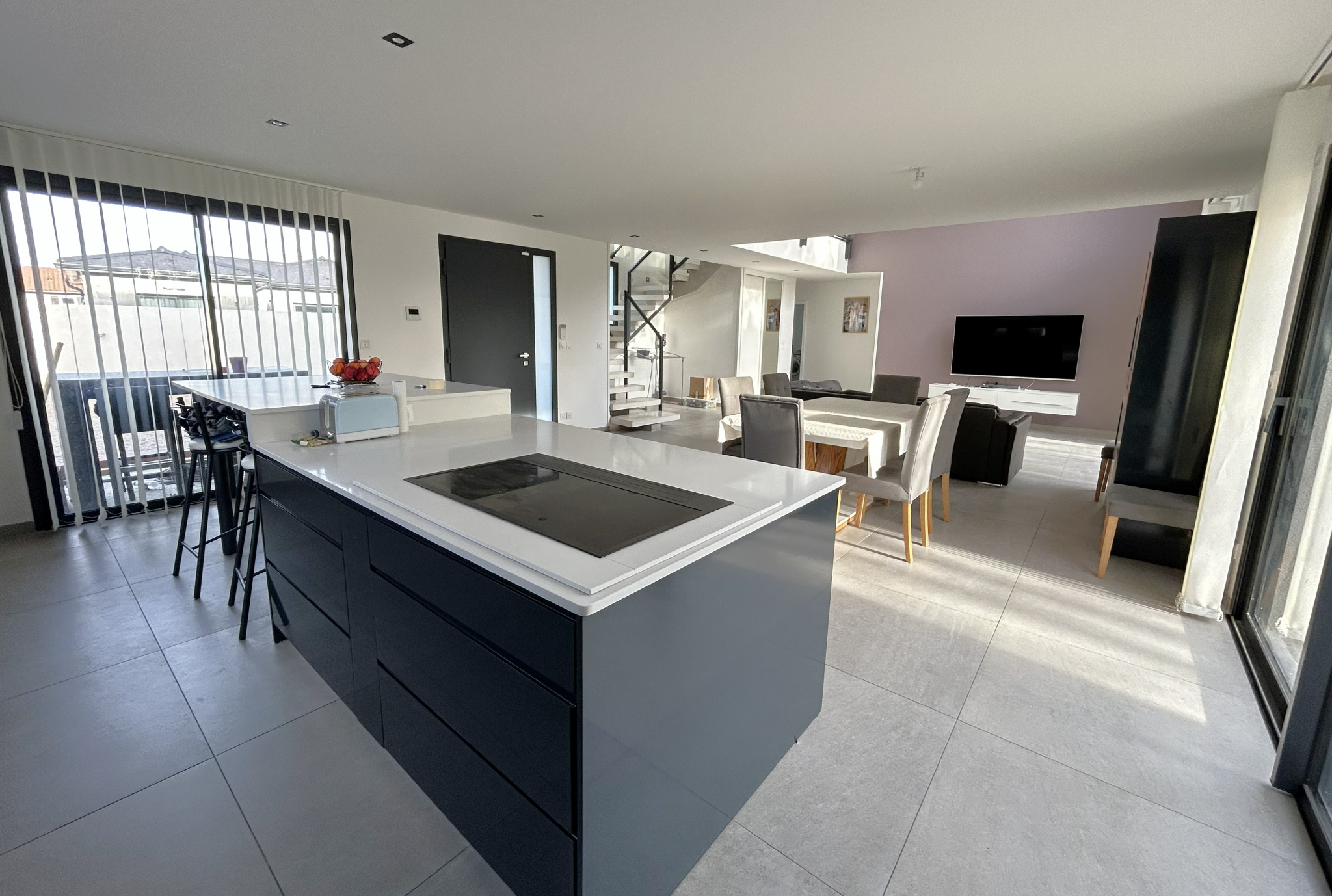 François Mathieu Immobilier – Maison moderne de 2022 d’environ 187m2 avec garage et piscine, le tout sur un terrain d’environ 643m2.