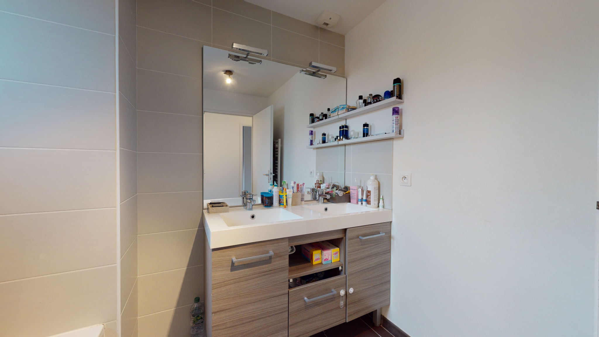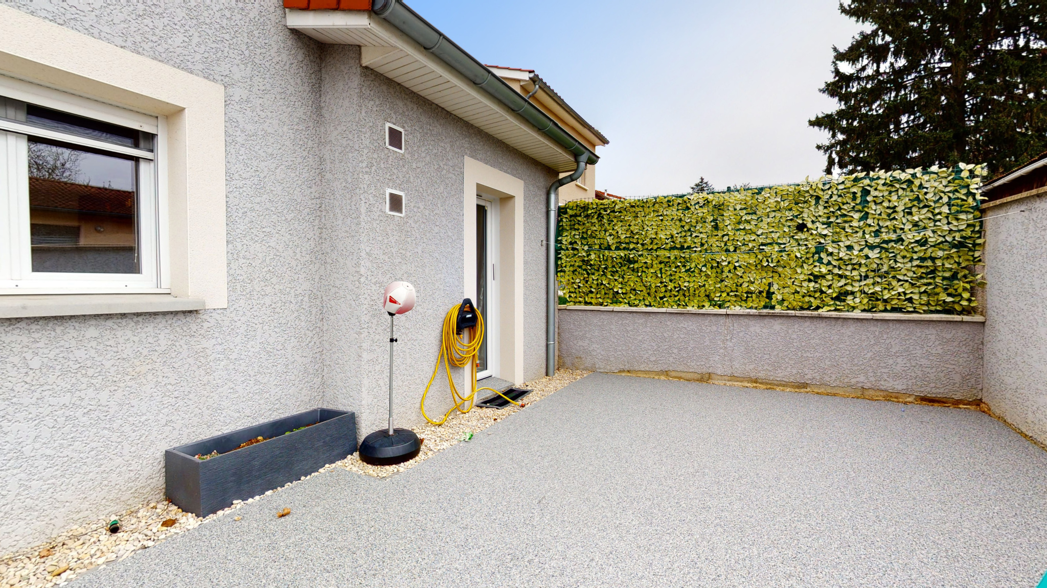 A l’extérieur une grande terrasse (revêtement moquette de pierre) exposée SUD avec store banne, une terrasse au NORD, un jardin et un espace de stockage d’environ 5m2.